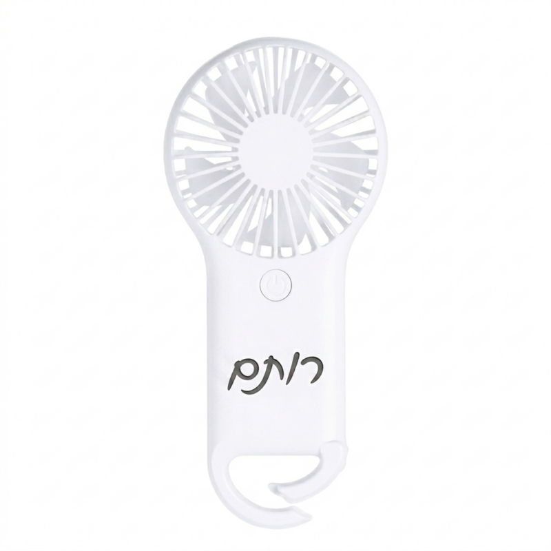 מאוורר נייד בעיצוב מינימליסטי עם אפשרות לחריטה אישית/סימון לוגו חברה. חזק ושקט במיוחד, מצויד בשאקל לנשיאה ותלייה נוחה.
