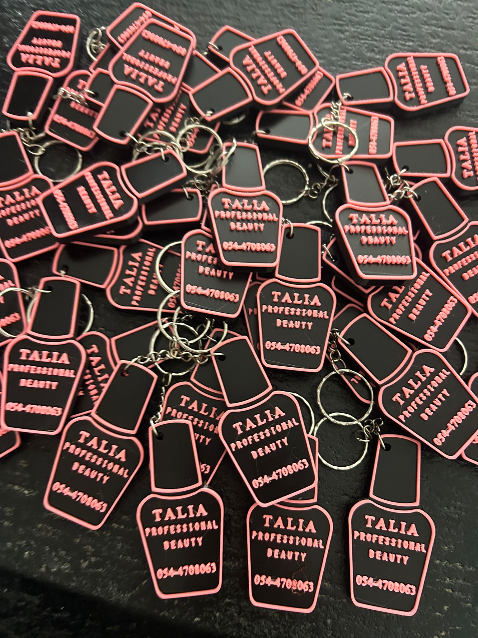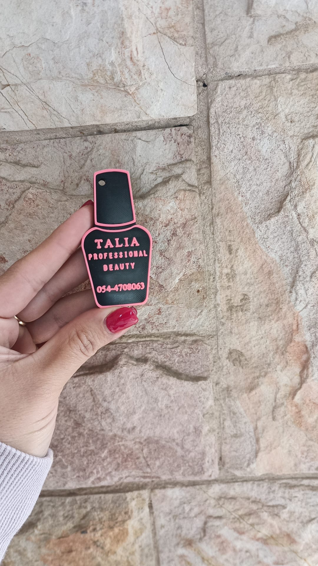 • עמידות ושיק: עיצוב הפרימיום של "בקבוק הלק הוורוד" עשוי מחומרים עמידים במיוחד שנשארים אסתטיים גם אחרי שימוש ממושך על צרור המפתחות.