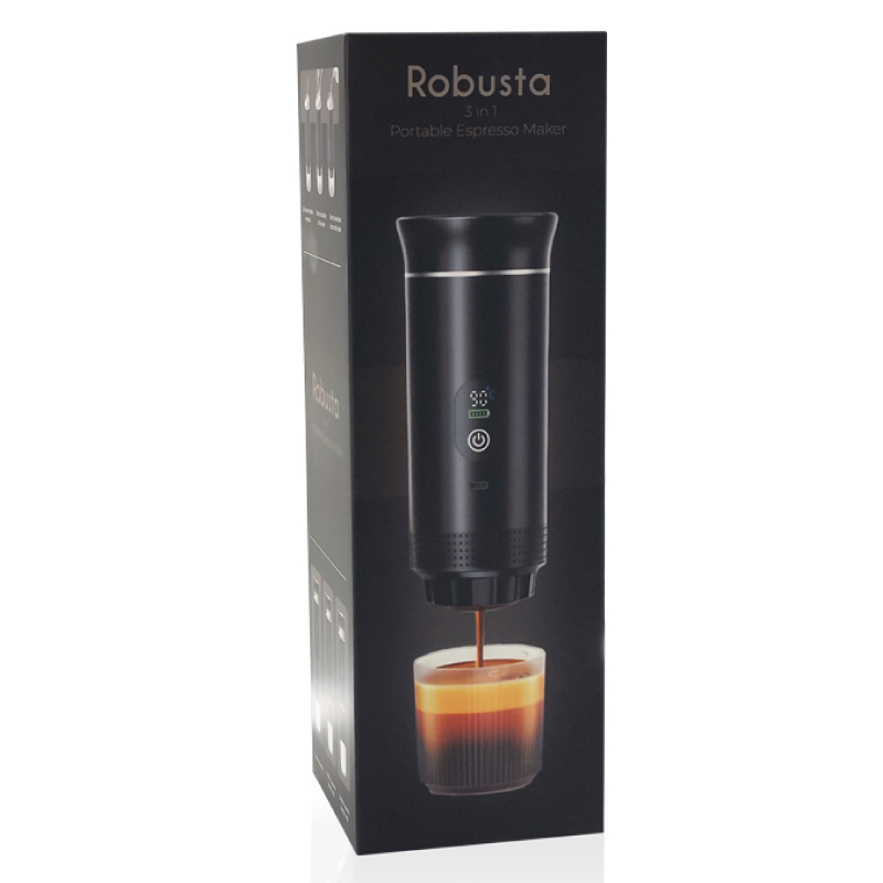 קומפקטית ועוצמתית: עיצוב ארגונומי שחור מט הנכנס בקלות למחזיק הכוסות ברכב או לתיק הגב, עם לחץ מיצוי שיוצר קרמה עשירה וסמיכה.