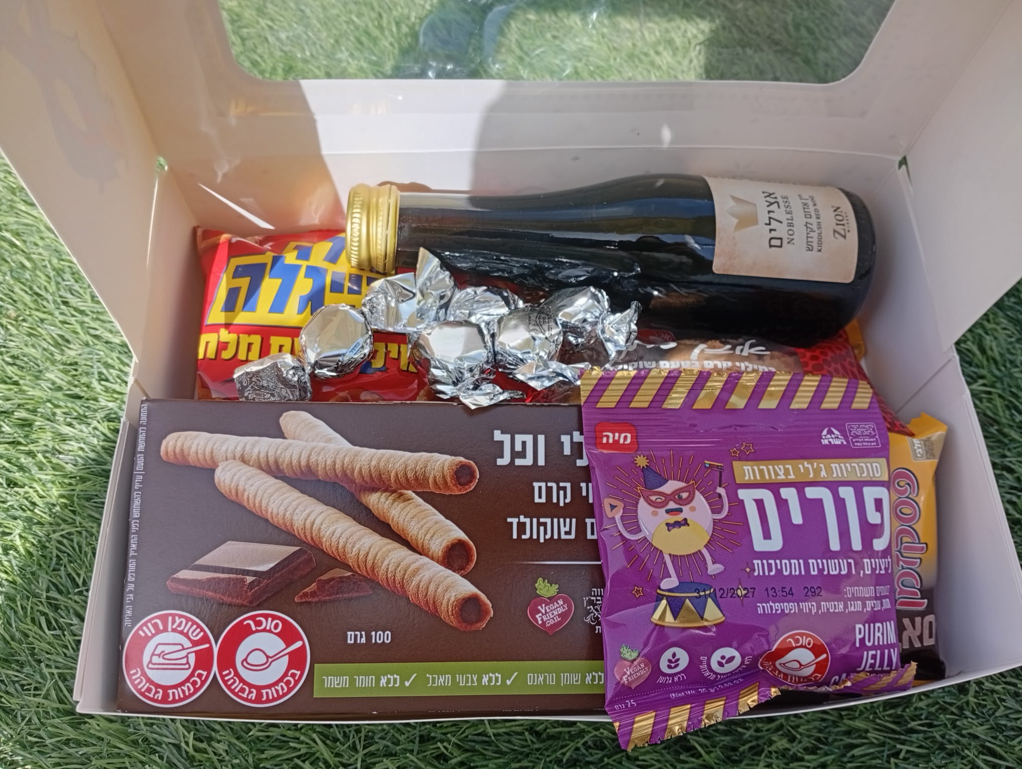 משלוח מנות מגיע בתוך קופסא -פורים שמח