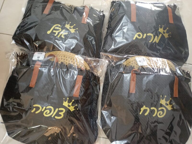 המחיר כולל מיתוג אישי על תיק הקש ועל הכובע