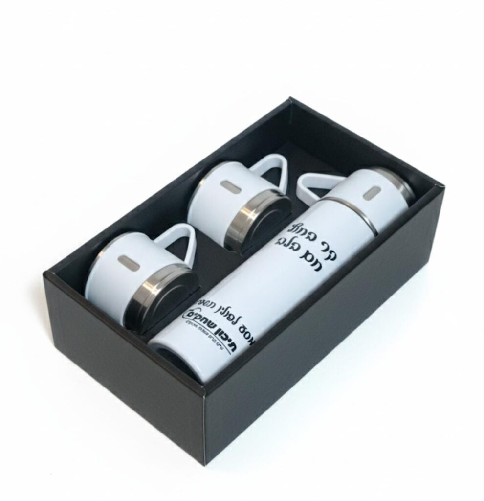 סט תרמוס נירוסטה עם כוסות במארז יוקרתי | מתנה ממותגת איכותית עם חריטה